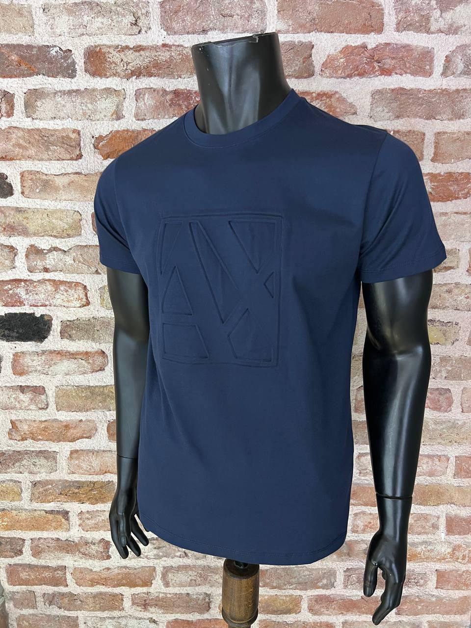 Navy cotton t-shirt with a large glossy printed A|X logo on the front. Comfortable fit, premium fabric, and subtle shine – perfect for everyday sophistication.