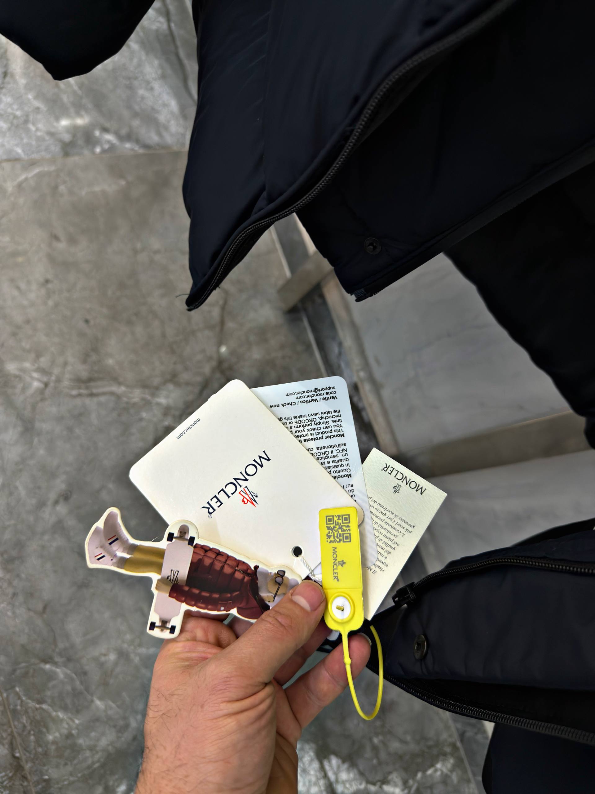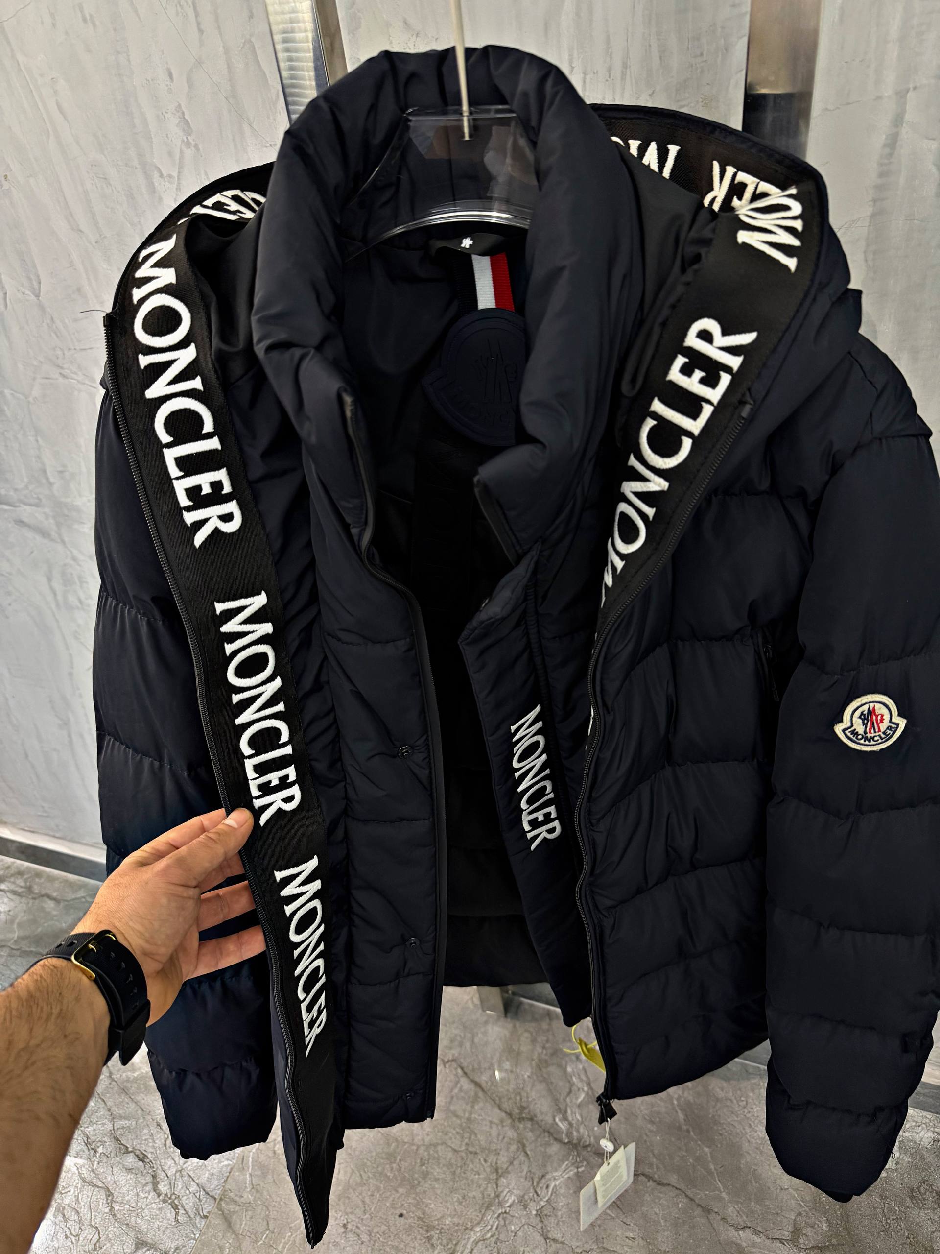 Moncler Navy Blue Down-Filled Puffer Jacket with Logo Hood