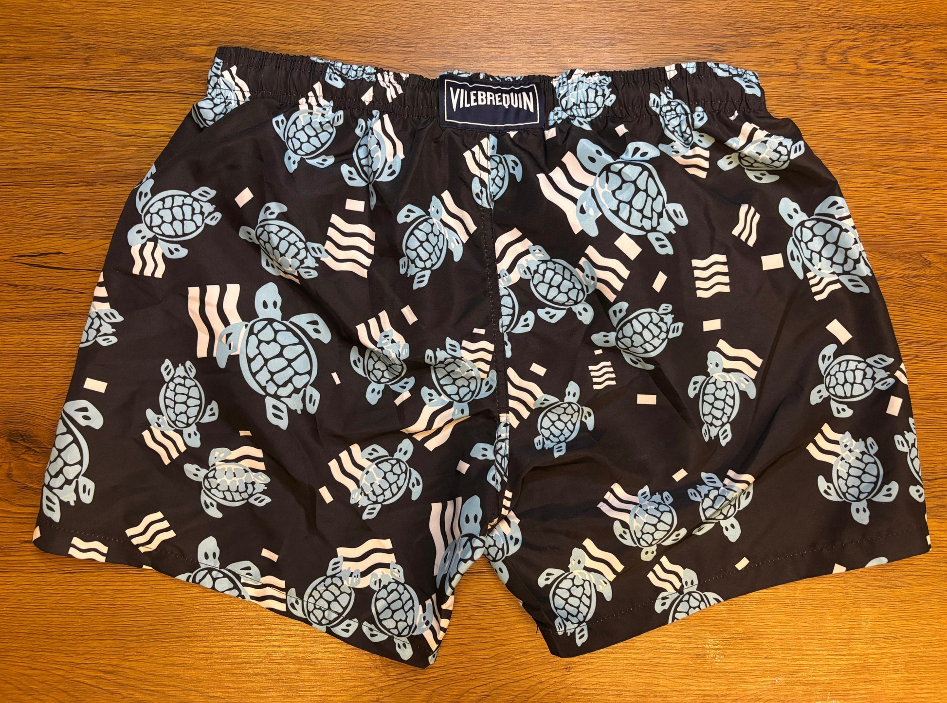VILEBREQUIN Moorea Swim Shorts - Black & Blue Turtle Print